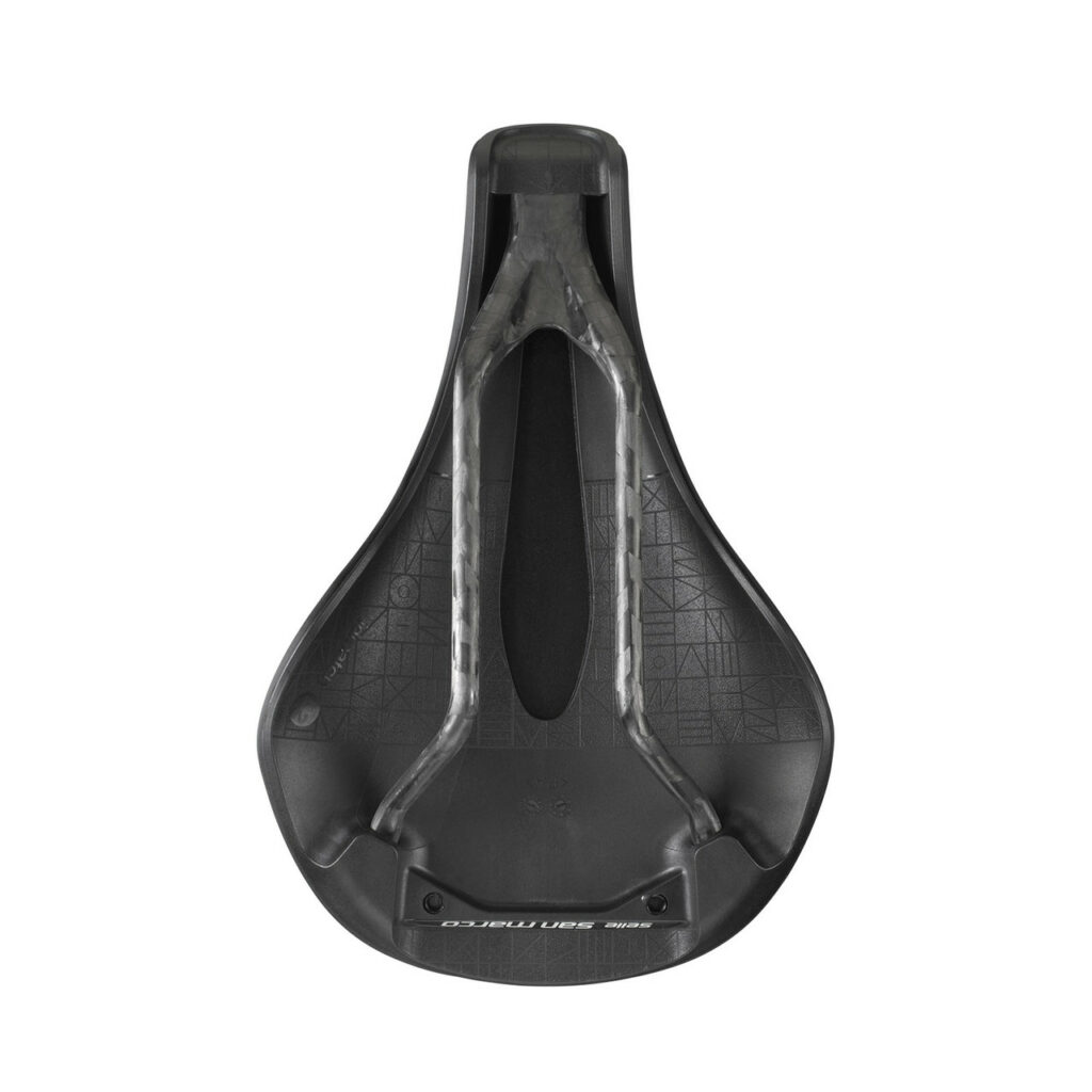 Le nez est large et rembourré pour offrir un confort accru en montée et un meilleur contrôle en descente, tandis que la surface supérieure creusée réduit la pression sur la zone périnéale.