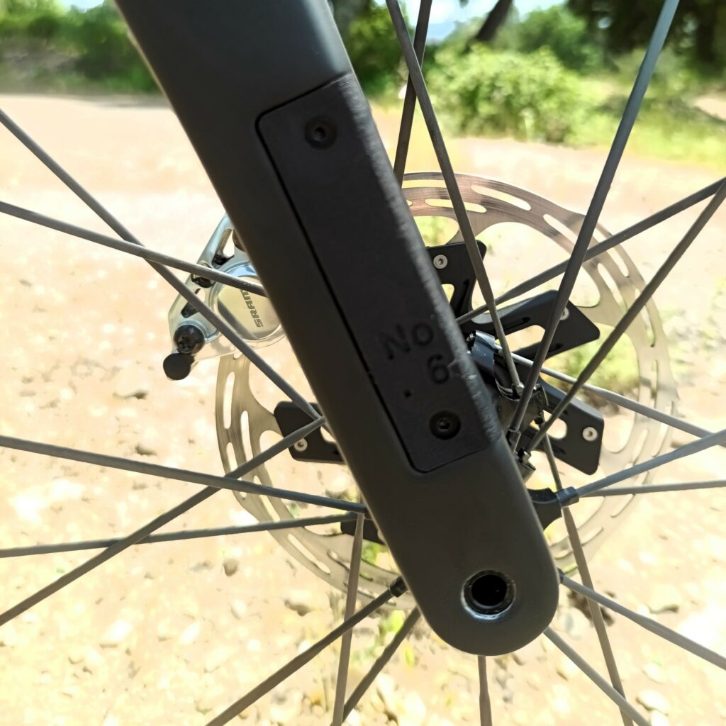 No. 6 Composites est étroitement lié à No. 22 Bicyles, un fabricant de vélo en titane qui fait vibrer les amateurs de beaux vélos aux USA et sur les réseaux sociaux. Avec la fourche Adventure, No. 6 Composites propose un produit haut de gamme, à la hauteur des vélos réalisés par No. 22 Bicyles. Cette fourche offre une large compatibilité avec des pneus jusqu’à 50 mm x 700c maximum (conseillé 47 mm), des inserts pour y fixer un garde-boue ou des accessoires, ainsi qu’un routage interne pour un fil de moyeu dynamo.