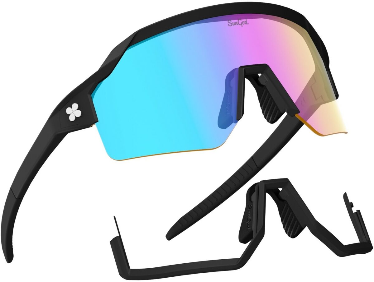 Sans peut-être le savoir, vous avez sûrement déjà vu des lunettes SunGod sur le nez d’athlètes internationaux, notamment des cyclistes. En effet, la marque équipe le peloton professionnel, notamment l’équipe INEOS Grenadier. Le modèle Vulcans se distingue par une modularité intéressante puisque l’on peut choisir deux configuration de chassis : avec ou sans cadre inférieur.