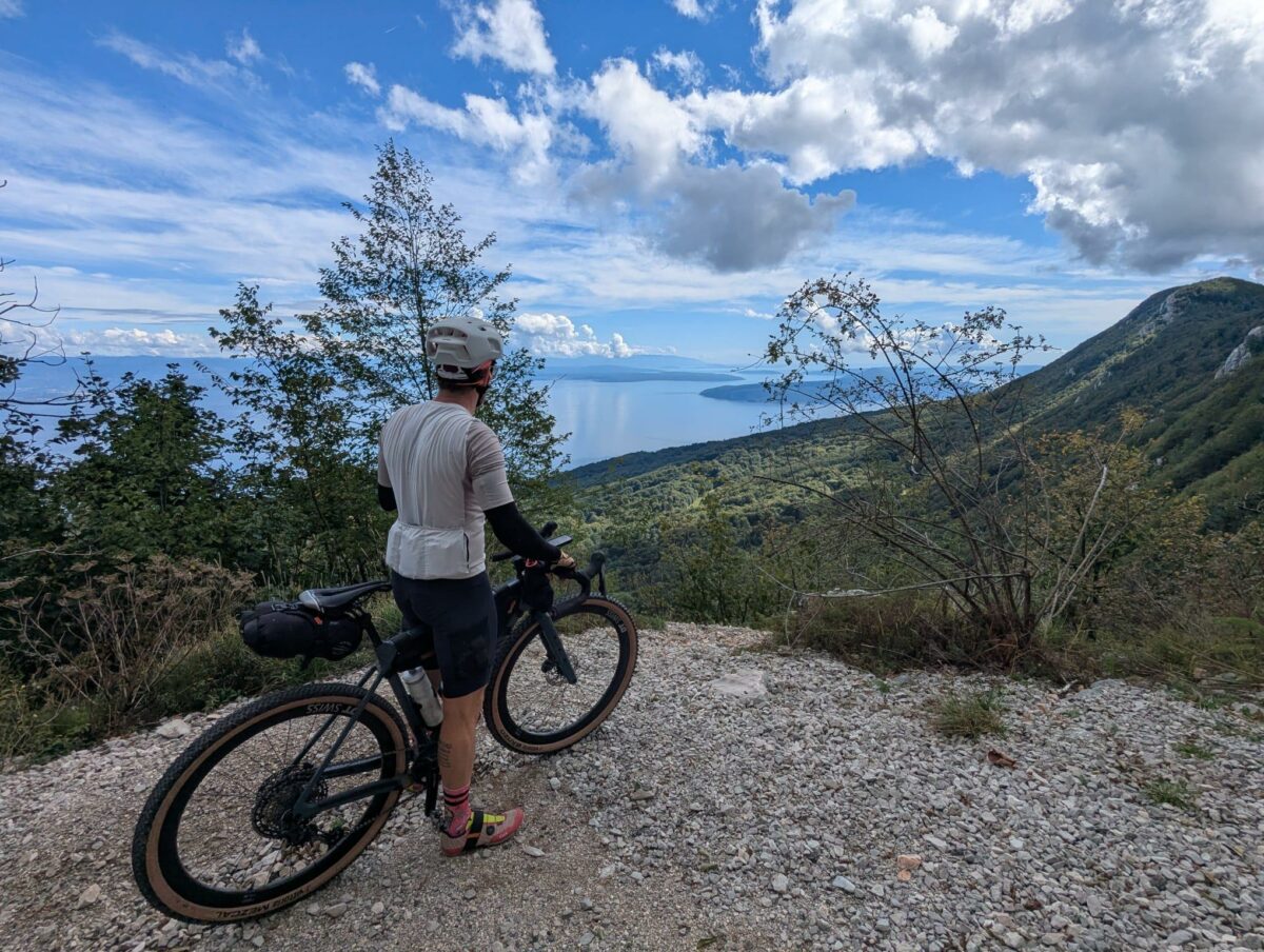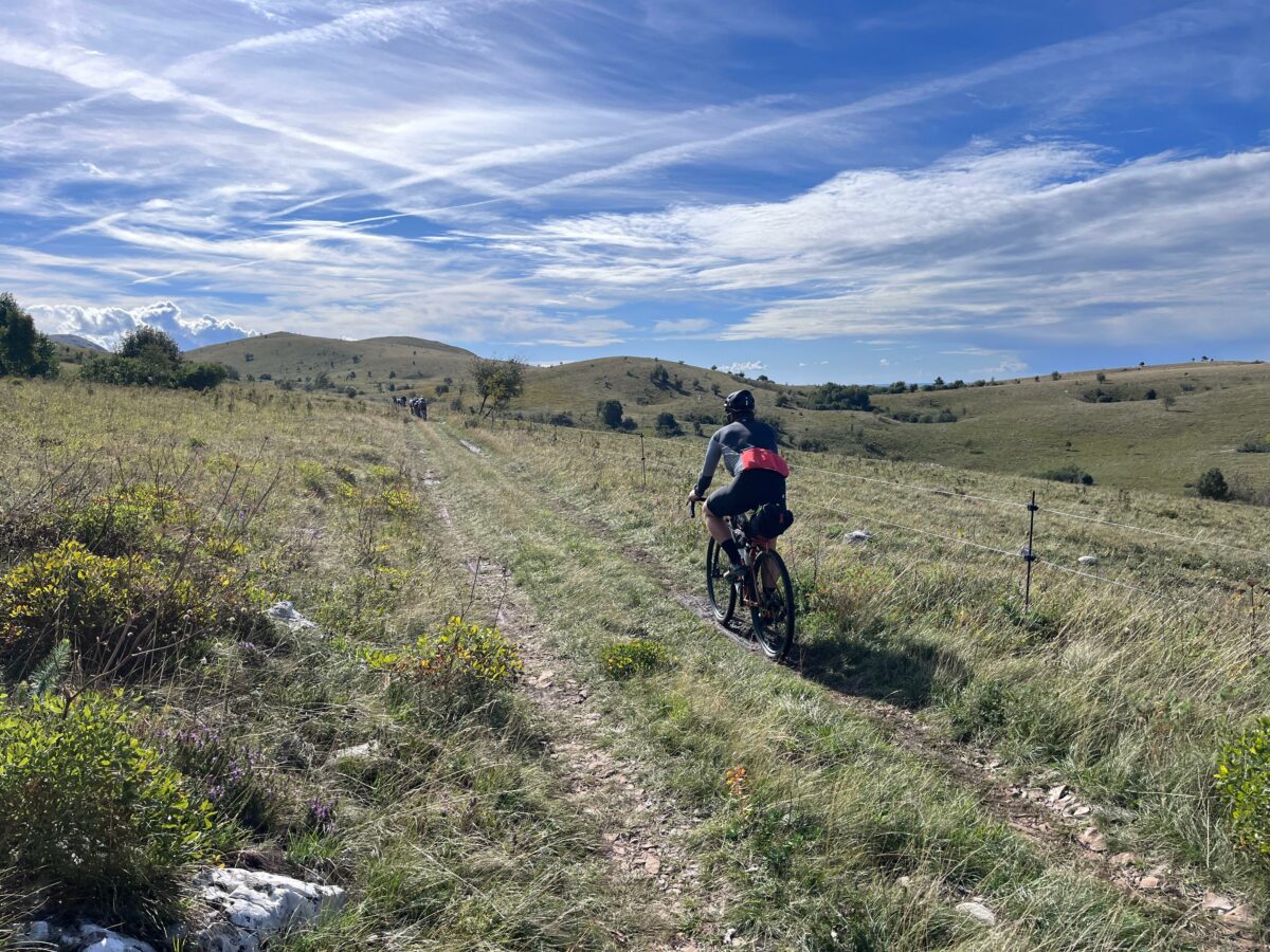 Le départ, donné à Basovizza, près de Trieste en Italie, s’est fait en douceur : nous avons suivi la voiture de l’organisation pour une phase neutralisée, l’occasion idéale de s’échauffer avant d’être propulsés sur la partie la plus sauvage du tracé. Très vite plongés au cœur de l’Istrie dite blanche, les crêtes calcaires et les sommets de la chaîne de l’Učka dominent le paysage. Les premiers kilomètres ont été un véritable test de résistance, avec une ascension majeure vers le Mont Vojak, point culminant du parcours à presque 1400 mètres. Le terrain était exigeant, rocailleux et les pentes raides ont eu raison de certains pneumatiques.