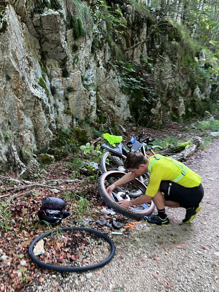 Pour ma part aucune crevaison, il faut dire que j’avais opté pour l’option monster gravel ! Avec le soutien de Vittoria, j’ai décidé de tester le combo ultime que l’on voit sur toutes les aventures d’ultra : Vittoria Barzo XC Race à l’avant et MEZCAL XC Race à l’arrière, tous deux en section de 2.10 !