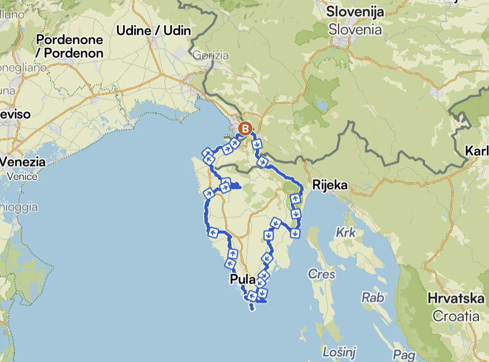 Quatre cent trente kilomètres. C’est la distance parcourue à vélo sur le parcours Istra Land, une épreuve de gravel à travers la péninsule d’Istrie. Située au carrefour de la Croatie, de la Slovénie et de l’Italie, cette région est un véritable joyau de l’Adriatique, souvent surnommée la “Toscane croate”. L’organisation nous promet 5000 m de dénivelé positif, mais surtout “70% off road & 100% ridable” (comprenez que le gravel passe partout).