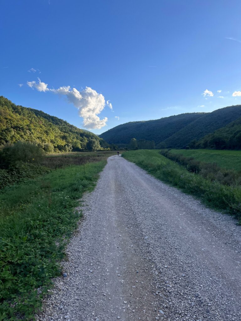 En arrivant dans la vallée de Potpićan, l’Istrie Grise a été un soulagement. Le terrain est devenu plus facile. Nos gravels ont roulé sur des chemins forestiers et des pistes terreuses, nous faisant traverser des champs et de petits villages de pierre.