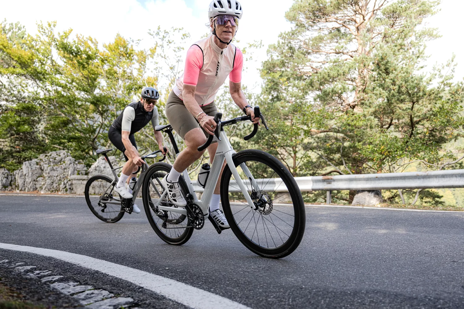 La géométrie du Scott Fastlane vise un équilibre entre endurance et efficacité. Elle favorise une position confortable tout en conservant un rendement élevé, proche du Scott Addict.