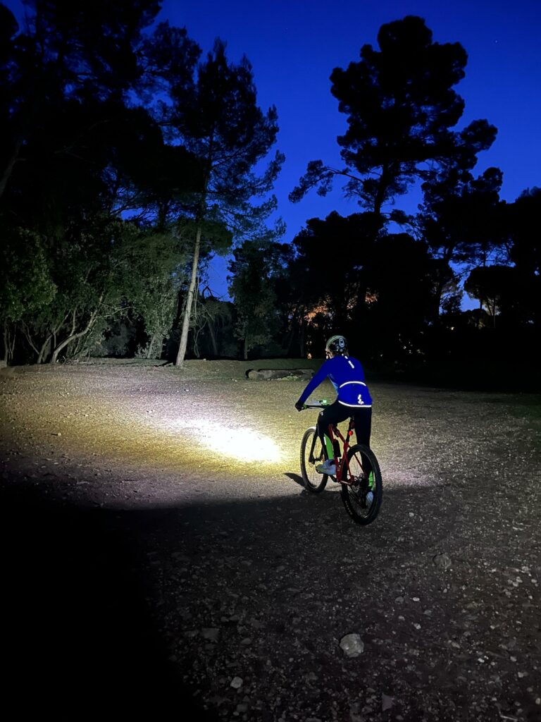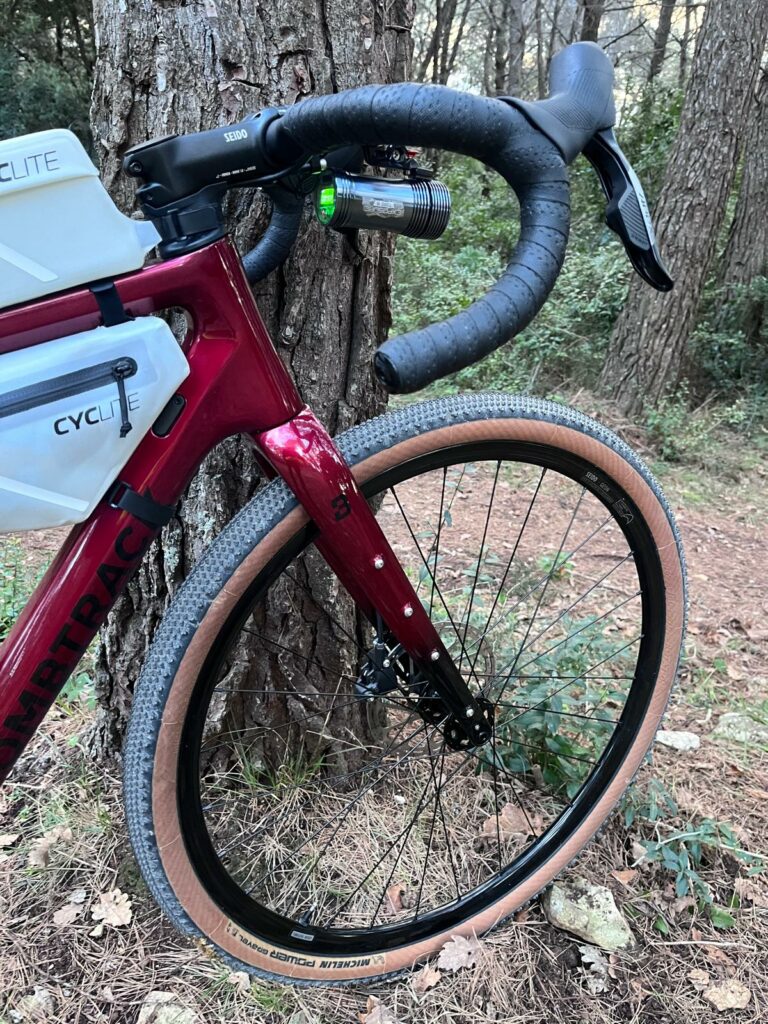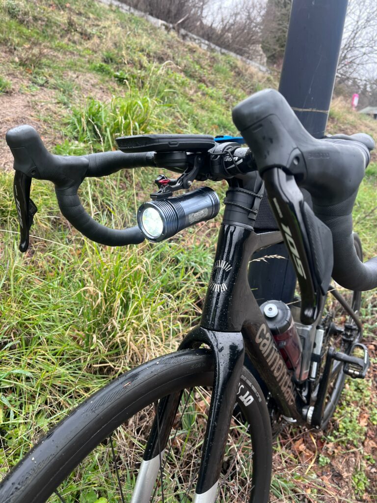 En mode Ultra (300-500 km) : le faisceau est particulièrement “propre” : il n’y a pas de point chaud central qui fatigue l’œil à la longue, mais une nappe de lumière homogène qui enveloppe la route. L’absence totale de câbles me permet de changer de position de mains sur le cintre sans jamais être gêné. Ce détail qui devient un argument majeur après 15 heures de selle.
