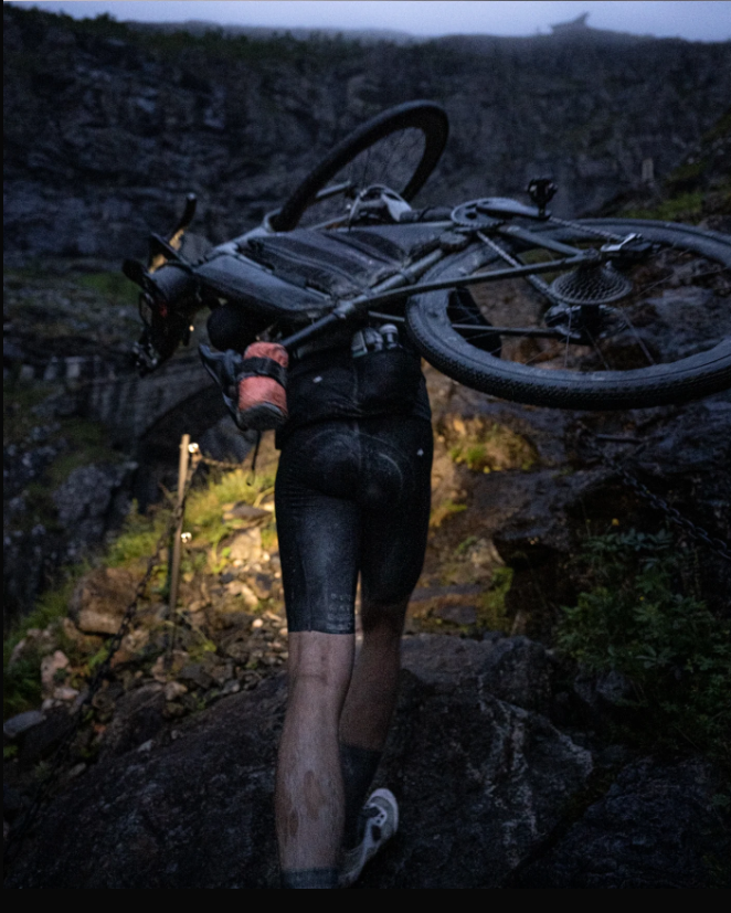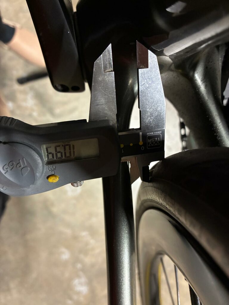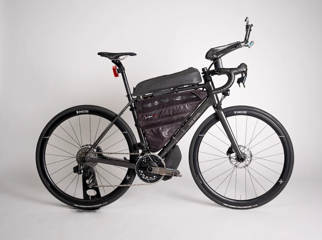 La géométrie du cadre a été spécifiquement étudiée pour l’ultra-distance. Par rapport à un pur vélo de route, le poste de pilotage est légèrement plus haut afin de favoriser une position plus redressée, sans pour autant compromettre la réactivité dynamique du vélo lorsque le rythme s’accélère. Pour l’épreuve, j’avais opté pour des prolongateurs “Profil Design”, parfaits pour reposer le haut du corps sur les parties roulantes.