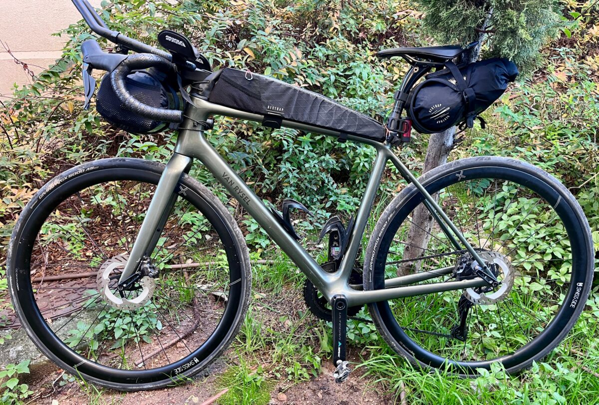 En résumé, ce Van Rysel EDR CF ULTRA que nous présentions en juillet dernier, s’impose comme une redoutable machine d’ultra-distance. Il parvient à concilier des caractéristiques souvent opposées : la légèreté d’un pur grimpeur et la filtration nécessaire pour passer 17 heures sur des routes dégradées. C’est un vélo techniquement abouti, dont le montage haut de gamme ne souffre d’aucune fausse note. Le “Fun Fact” de ce Gravelman Marseille Route est que j’ai passé ces 17 heures accompagné de Nathan, un autre participant, lui aussi en Van Rysel, mais version RCR. Son coup de pédale couplé à ses roues de 55 mm de haut m’ont donné du fil à retordre sur le plat !