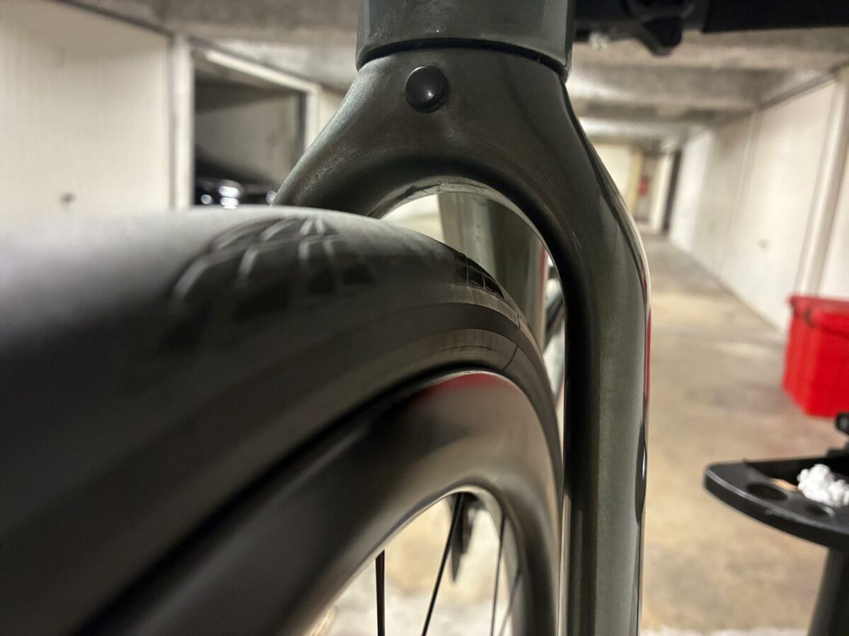 Clearance et Polyvalence : le cadre offre un dégagement impressionnant allant jusqu’à 38 mm (donnée constructeur), transformant ce vélo de route en une véritable machine “All Road” capable d’absorber les pires revêtements.
