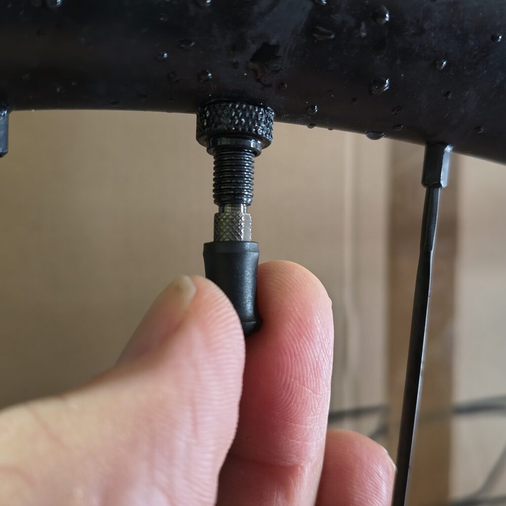 Pour libérer de l’air (pour ajuster la pression lors d’un ride par exemple), il faut appuyer ou tapoter sur la tige au centre de la valve. On peut le faire avec l’ongle, mais Schwalbe recommande d’utiliser le bord du capuchon de valve. Sur ce point, cela n’est ni plus pratique ni plus précis qu’un système traditionnel Presta.
