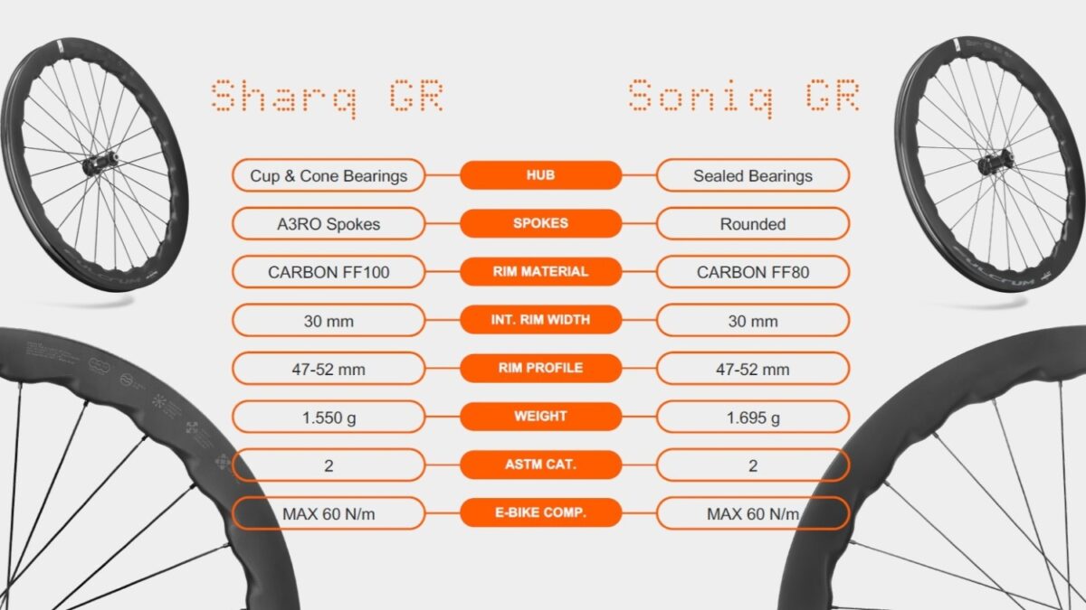Les roues Fulcrum Sharq GR et Soniq GR partagent la même conception mais proposent des caractéristiques techniques distinctes pour répondre à des besoins et/ou à des budgets différents :