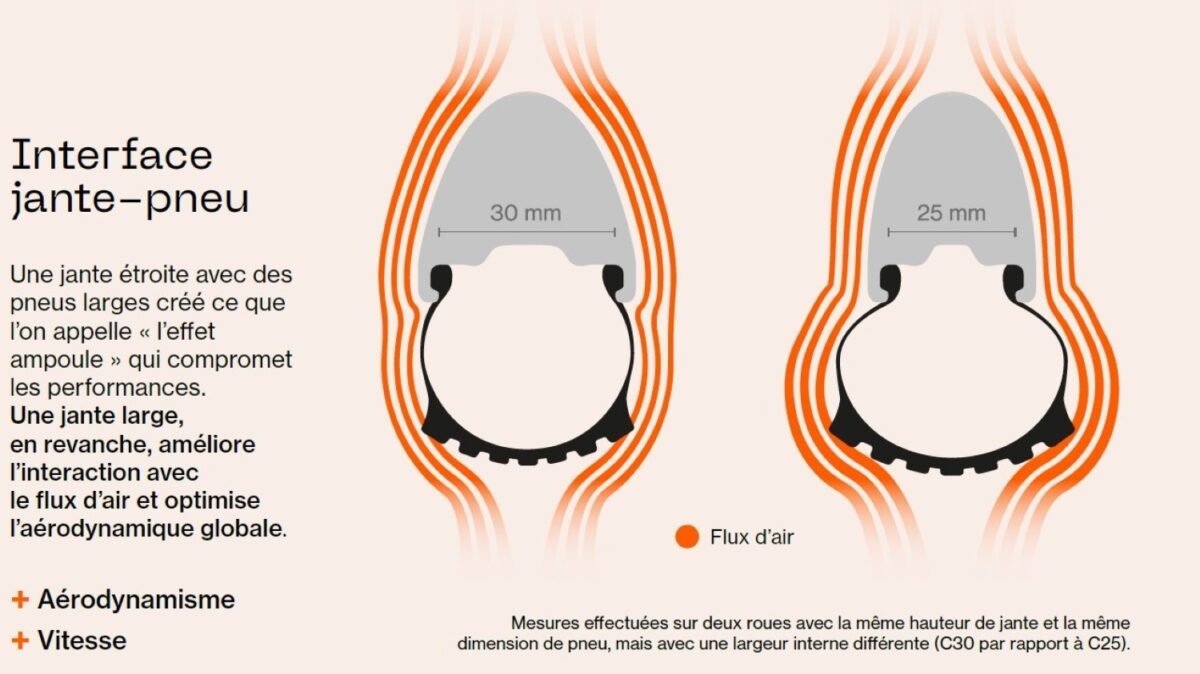 Ainsi, la nouvelle jante 2-Wave de largeur interne 30 mm est conçue pour recevoir des pneus larges, alors que le profil en vague, d’une hauteur de 47 à 52 mm, améliore la gestion du flux d’air et la traînée frontale.