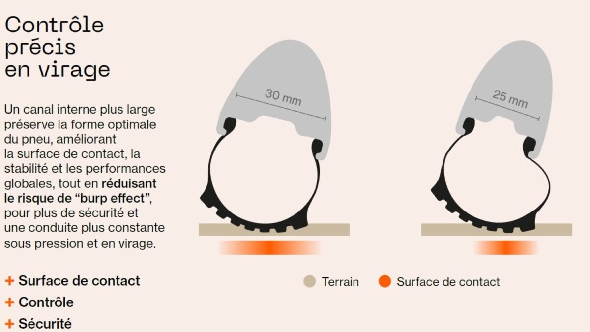 Si le design général n’évolue pas profondément au regard des modèles Sharq et Soniq, c’est sur la largeur interne que les Sharq GR et Soniq GR marquent leur différence majeure. On passe ainsi d’une largeur interne de 25 mm à plus de 30 mm !