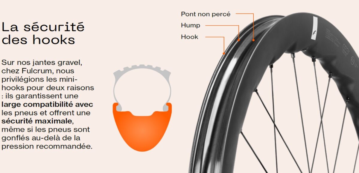 Les deux modèles utilisent la technologie 2-Way Fit™ avec fond de jante non percé, ainsi qu’un système mini-hook (à crochets) :