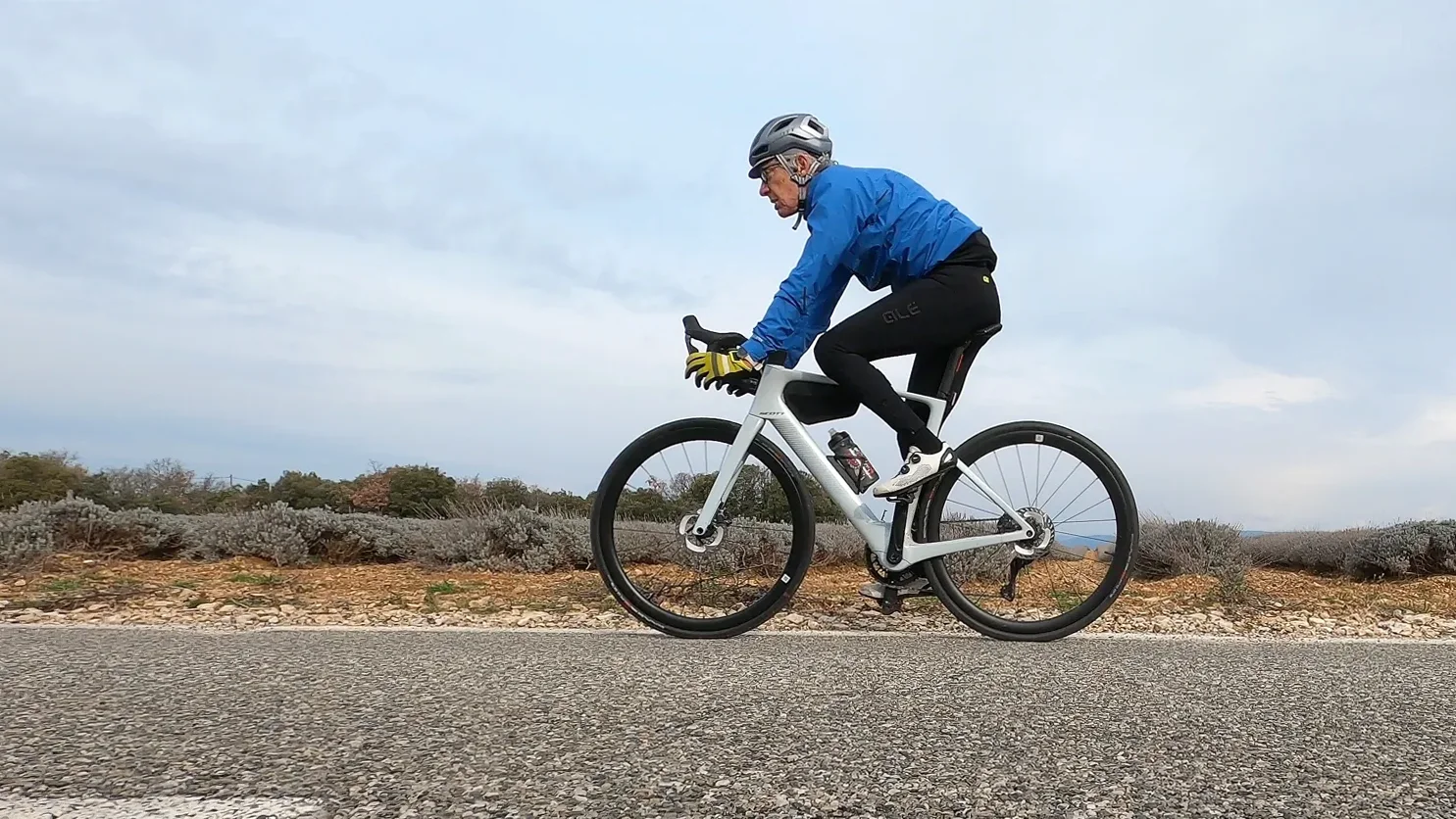 Après avoir testé le Trek Domane+ SLR6 et plus récemment le Giant Defy Advanced Plus Elite 0, je me lance, sur la “voie rapide” (Fastlane) ouverte par Scott, au guidon de ce vélo pour un test hivernal dans le Luberon.