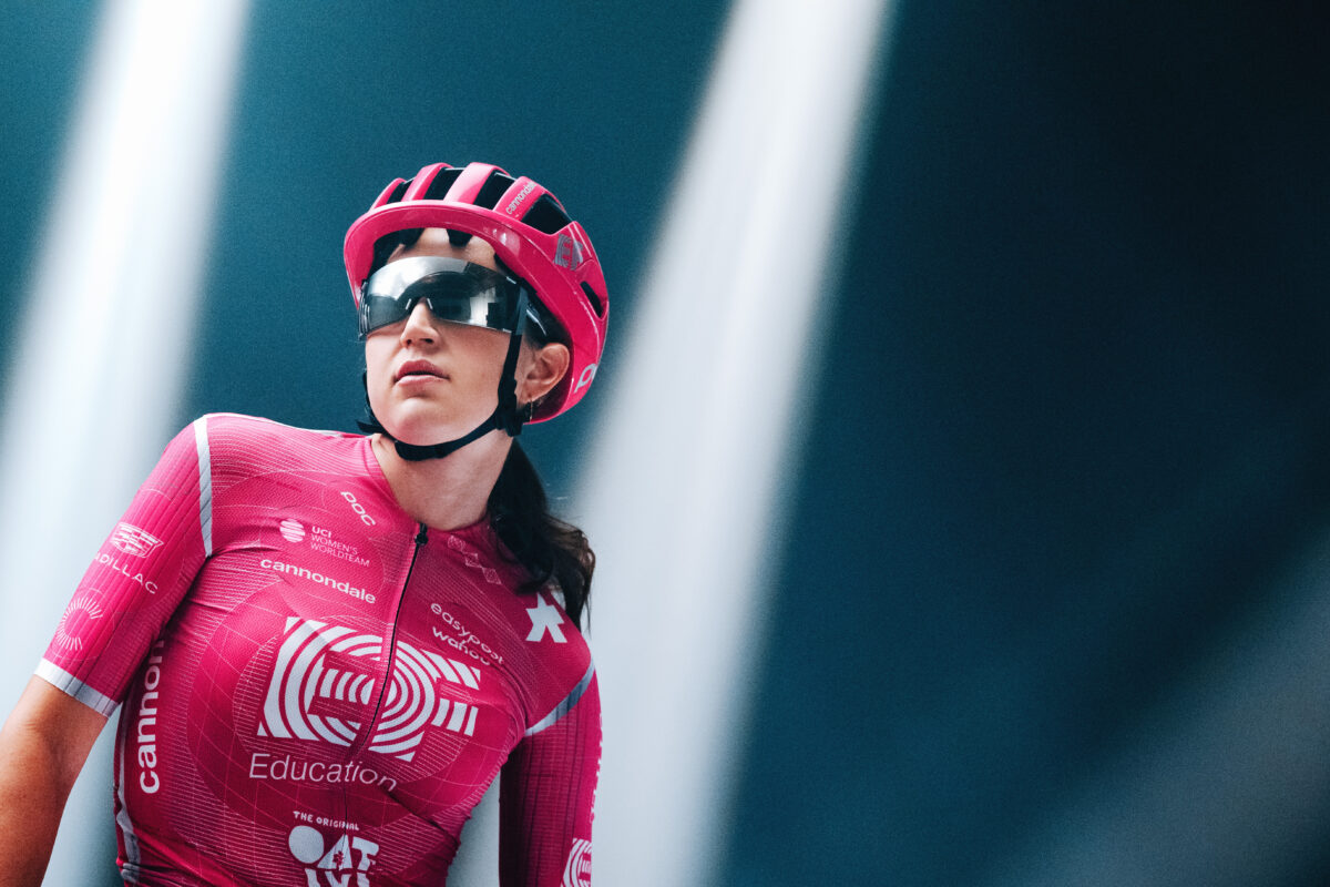 La médaillée d’or olympique et championne américaine en titre de cyclisme sur route Kristen Faulkner aux couleurs de ASSOS x EF – photo ASSOS x EF