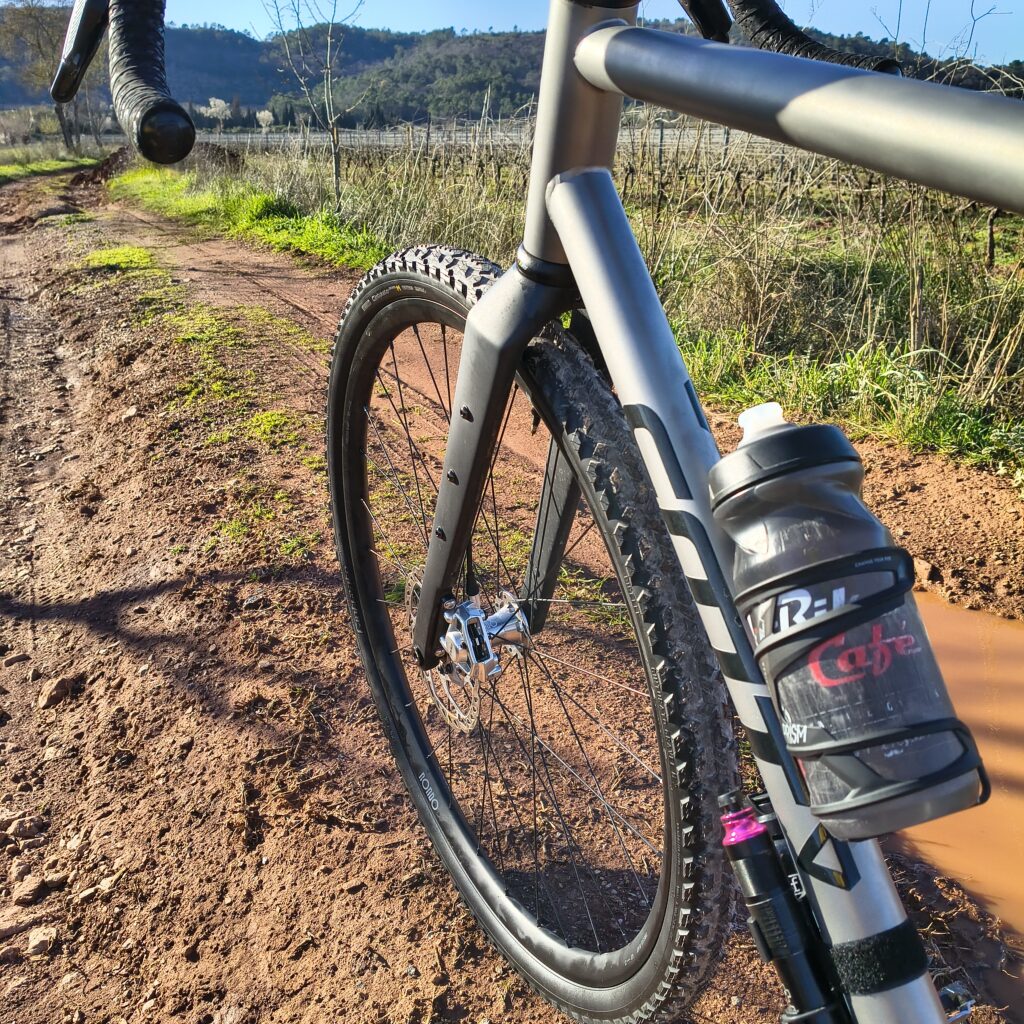 J’ai testé ces roues dans le massif des Maures. Afin de rester le plus objectif possible, j’ai monté ces roues sur un de mes vélos gravel personnels, que je connais parfaitement, un CMT Gravel CX. Quant aux pneus, j’ai utilisé une nouveauté, mais avec laquelle j’ai déjà roulé, en l’occurrence des Kenda Crusher tressés en 120 TPI.