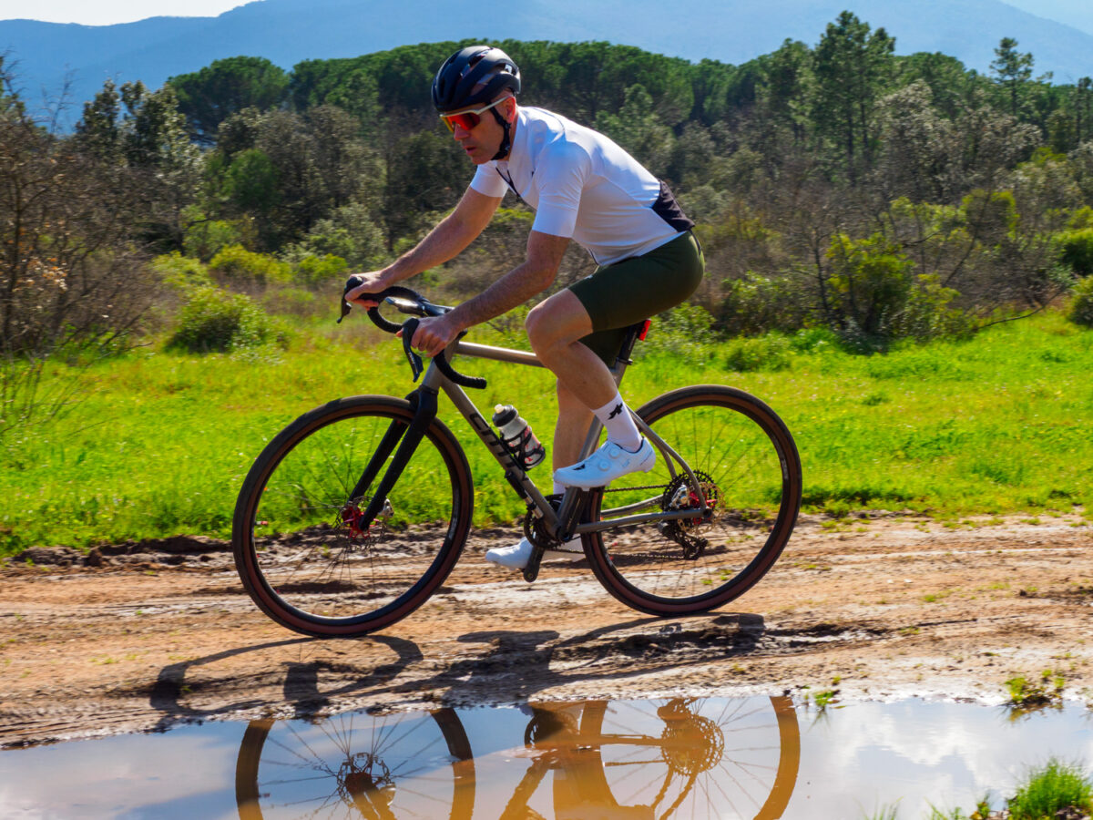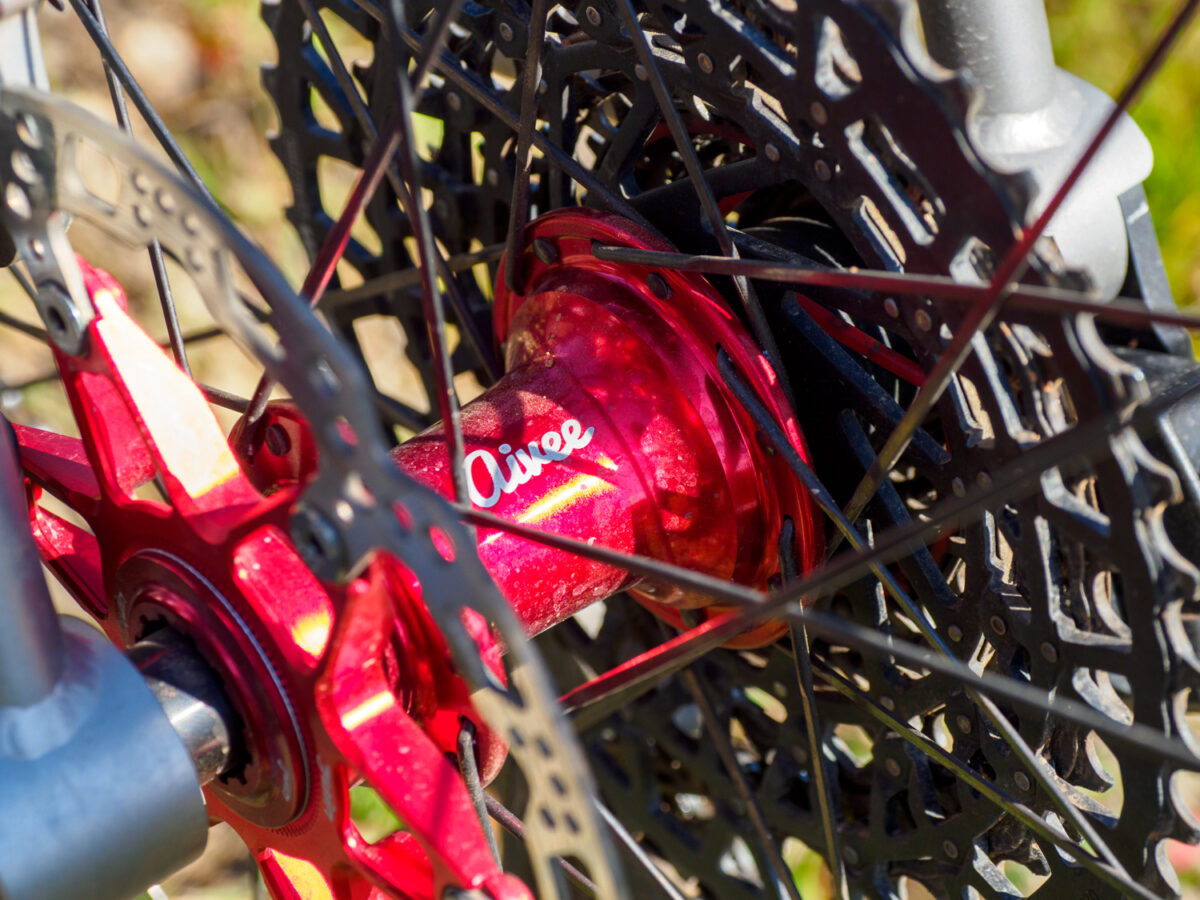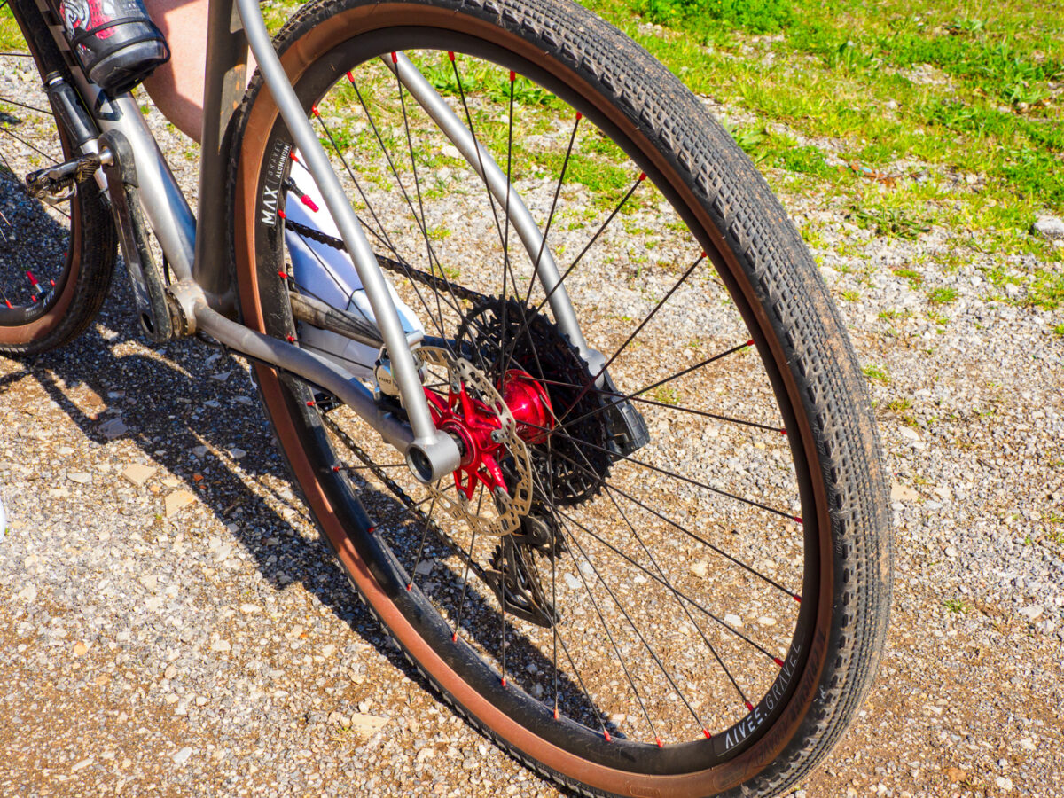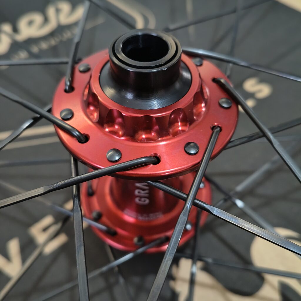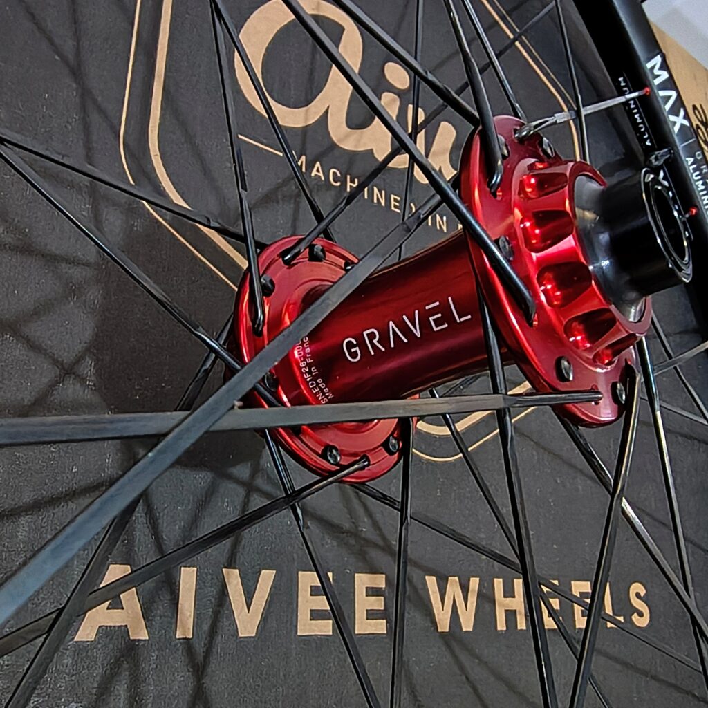 Est-ce que le gravel a apporté une différence dans le montage de roues ? “Non… J’en monte en général avec 24 rayons avant et arrière, largeur interne 23 et 28 externe sur les jantes carbone. En fait, mes jantes de gravel sont des jantes de route.“