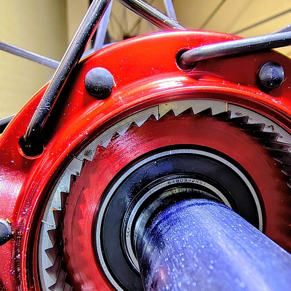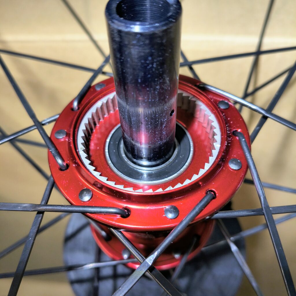 Quelles sont les roues dont tu es le plus fier ? “Ce sont mes roues que j’utilise en compétition, montées avec des moyeux proto d’acse, des jantes pour boyaux proto également fabriquées à Vitrolles par mon ami qui réalise aussi des pales d’hélico pour Airbus Helicopters. Et puis, les autres roues, ce sera la paire que je vais bientôt monter, quand j’aurai reçu les jantes Duke carbone à pneus que j’attends. Ce sera ma première paire de roues à pneus qui sera en dessous d’un kilo.”